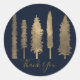 Sticker Rond Bleu foncé et or Forêt Boisé Arbres Favor rural