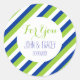 Mariage préférez les autocollants avec rayures en bleu royal, vert et blanc avec des modèles personnalisables pour le libellé de votre choix.