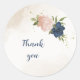 Sticker Rond bleu marine fleurs vert feuille mariage