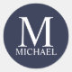 Sticker Rond Bleu marine Monogramme personnalisé et nom