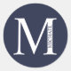 Sticker Rond Bleu marine Monogramme personnalisé et nom