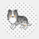 Sticker Rond Bleu Merle Shetland Sheepdog Sheltie Dessin Chien