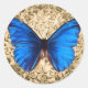 Sticker Rond Bleu monarque papillon damassé art Vintage