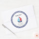 Autocollant rond pour la faveur d'anniversaire avec la conception nautique de voilier.