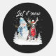 Sticker Rond Bleu Nez Pitbull Père Noël Chien Noël Snowman Noël