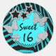Cet autocollant chic et tendance de 1,5" rond Sweet 16 anniversaire a une parties scintillant bleu aqua (IMPRIMÉE) et des bandes d'animaux en zèbre noir avec un motif pois et une fausse parties scintillant argentée (IMPRIMÉE) papillons, étoiles, coeurs, et une fleur funky, avec des boîtes de texte pour customiser comment vous voulez sur elle qui plaira à une jeune fille moderne. Vous pouvez choisir parmi 2 tailles. Tout va s'imprimer comme vous le voyez sur votre écran, donc si vous avez besoin d'aide pour customiser votre texte, ou si vous voulez une invitation de sweet sixteen, Bat Mitzvaj, ou Quinceanera, ou si vous voulez dans une autre combinaison de couleurs, s'il vous plaît envoyer un courriel niteowlstudio@gmail.com AVANT de commander.
