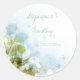 Cet élégant autocollant vintage chic mariage rond a un arrière - plan bleu pâle avec quelques oiseaux volant autour. Sur la gauche, on découvre une belle décoration feuille de feuillage bleu, blanc et vert olive. En haut, vous pouvez facilement customiser ceci avec les noms de la mariée et du marié ainsi que la date de votre cérémonie de mariage. Ces couleurs chaudes seraient parfaites pour un mariage d'automne ou d'hiver, mais pourraient être utilisées à tout moment de l'année! com