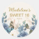 Sticker Rond Bleu Poussiéreux Blanc Floral Douce 16 Ans Nom d'a