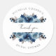 Sticker Rond Bleu Poussiéreux et Floral Merci Navy