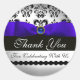 Sticker Rond BLEU RIBBON NOIR & BLANC DAMASK Sapphire