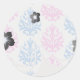 Sticker Rond bleu rose blanc damassé