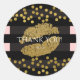 Sticker Rond Bleu rose et noir rayures Gold Kiss lèvres