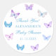 Sticker Rond Bleu rose violet Baby shower papillon Merci