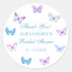 Sticker Rond Bleu rose violet Fête des mariées papillon Merci