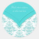 Elégant joint d'enveloppe ronde turquoise bleu et blanc damassé et étiquettes d'adresse de retour. Ce design élégant peut également être utilisé comme un autocollant de mariage et de fête. Ajoutez votre propre texte ou supprimez pour un autocollant simple.