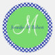 Sticker Rond Bleu Vert Polka Blanc Point Monogramme Enveloppe P