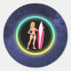 Sticker Rond Blonde Surfer Adolescent Girl Galaxy