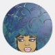Sticker Rond Blue Afro Ebony Girl Gros Cheveux