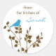 Ces stickers fantaisistes personnalisés de conserves de cuisine ont un oiseau bleu aqua mignon et tendance assis sur la silhouette d'un arbre brun. Parfait pour les cadeaux de cuisson et de conserverie.