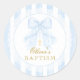 Blue Bow Lace Boy Baptism Classic Round Sticker.