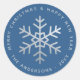 Sticker Rond Blue Christmas Snowflake Elegant Faux Silver Foil