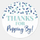 Merci de popping par étiquette de faveur autocollant avec confetti de motif de parties scintillant bleue. Un pop-corn parfait pour le mariage ou le baby shower.
