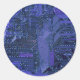 Sticker Rond Blue Cyber Circuit Board Tech Art Electronique