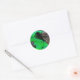 Sticker Rond Blue Damselfly on a green leaf.