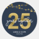Cet élégant autocollant rond du 25e anniversaire présente des cordes de lumières et "25" en faux or avec "les années ensemble" en blanc contre un arrière - plan bleu foncé. Consultez l'invitation correspondante et les objets comme les autocollants et les timbres ici https://www.zazzle.com/collections/strings_of_lights_faux_gold_celebration_collection-119311942951401241?rf=238364477188679314 Personnalisez-le avec vos détails en remplaçant le texte de l'espace réservé. Pour plus d'options, cliquez sur le bouton "Personnaliser". *Veuillez noter que le filigrane Zazzle qui apparaît dans l'aperçu du zoom n'apparaîtra PAS sur le produit imprimé final. © Bois de rose et agrumes