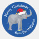 Les mignons animaux de vacances sont ma partie préférée de Noël. Un bel éléphant portant un chapeau de Père Noël rouge et qui a l'air heureux. Cet autocollant cadeau d'éléphant bleu personnalisé me remplit d'esprit de Noël.