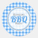 BBQ autocollants pour la fête de la Réunion familiale d'été. Personnalisez les sceaux d'autocollants bleu et blanc en vichy à damiers avec votre nom de famille.