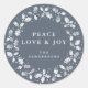 Sticker Rond Blue-Grey Peace Love + Joy Holly Wreath