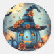 Sticker Rond Blue Halloween Pumpkin Jack-o-lantern