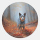 Sticker Rond Blue Heeler dans les feuilles d'automne automne au