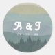 Sticker Rond Blue Retro Mountains and Forest Wedding Monogram