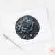 Sticker Rond Blue Rose with Jewels on Black Fabric