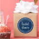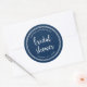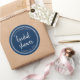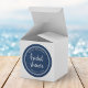 Sticker Rond Blue Script and White Stripes Bridal Shower