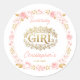 Sticker Rond Blush Pink & Gold Floral Girl Baby Shower