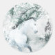 Sticker Rond Blustering Winter Woodland Forest White Horse
