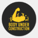 Sticker Rond Bodybuilder corps en construction Funny Gym corps