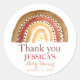 Mignonne, Terre, Bohème, Boho Merci d'aquarelle fleurie arc-en-ciel de Boho. En terre cuite, autocollant couleur terre. Elégante, calligraphie simple, autocollant photo Baby shower. Personnalisez-le avec vos détails.