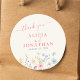Elégant simple printemps été rustique floral botanique aquarelle bohême jardin doux jaune crème champagne merci modèle autocollant mariage avec des fleurs sauvages colorés et un script de calligraphie rose chic. ++++++++++++++++++++ Facile à personnaliser avec votre texte, vos noms et votre date ! +++++++++++++++ Convient pour les mariages bohèmes de campagne en plein air rustique.
