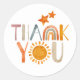 aquarelle coloré "merci" boho arc-en-ciel, soleil et étoiles autocollant. Parfait pour les baby showers, anniversaires et plus ! Sexe neutre