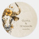 Sticker Rond Boho Chic Aquarelle Floral Vache Mariage crâne