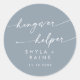 Ce boho chic cintré bleu huppé aide à favoriser classique collant rond est parfait pour un mariage minimaliste. Le design moderne et bohème, bleu clair neutre, présente une calligraphie rustique simple, avec un style unique mais classique. Personnalisez vos autocollants de faveur avec vos noms et votre date de mariage.