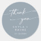 Ce sticker boho chic bleu poussiéreux merci mariage faveur classique rond est parfait pour un mariage minimaliste. Le design moderne et bohème, bleu clair neutre, présente une calligraphie rustique simple, avec un style unique mais classique. Personnalisez vos autocollants de faveur avec vos noms et votre date de mariage.