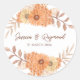 Rendez votre journée encore plus mémorable avec ce magnifique Sticker Mariage Boho Chic Orange Floral. Avec un bel agencement de délicates fleurs d'oranger, ce design reflète parfaitement le charme d'un mariage d'inspiration bohème. Les tons terreux et les détails floraux complexes créent une atmosphère chaleureuse et accueillante, donnant le ton d'une fête détendue et élégante.