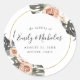 Scellez vos enveloppes et vos sacs de faveur avec nos autocollants de mariage Boho Floral Tropical. Les autocollants de mariage personnalisés présentent vos noms, date de mariage et ville/état entourés d'un cadre de cercle en faux or orné de feuilles de monstera vert foncé, de pivoines roses et d'orchidées. Conçus pour coordonner avec notre collection de mariage Boho Floral Tropical.