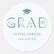 Boho graduation party faveur autocollant avec texte de typographie qui dit "GRAD" dans une police de typographie mystique. La couleur est turquoise.