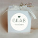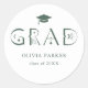 Boho graduation party faveur autocollant avec texte de typographie qui dit "GRAD" dans une police de typographie mystique. La couleur est verte.